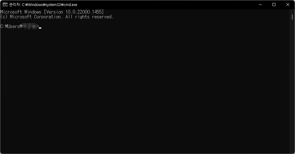 관리자 권한 명령 프롬프트 실행 후 아래의 명령어를 치고 엔터